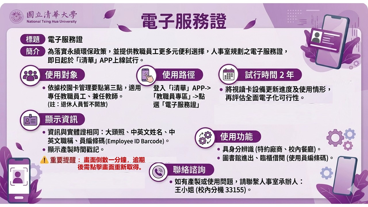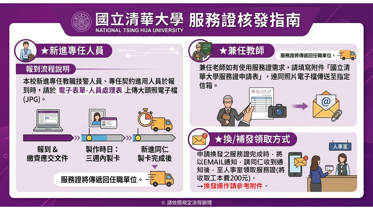 如系辦需整批領取該系所老師及助理服務證,請先電話通知人事室,俾利作業,謝謝。